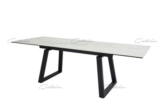 Milana White Sintered Stone Extending Cross Leg Dining Table