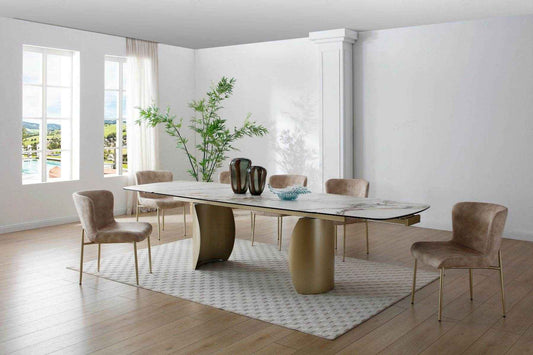 Cosma White & Sunset Cloud Vein Ceramic Extending Dining Table