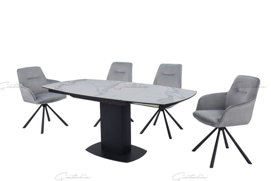 Ritz Swivel White / Grey Ceramic Marble Extending Dining Table