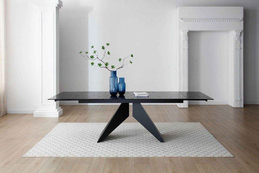 Rossa Matt Black & White Vein Ceramic Extending Dining Table