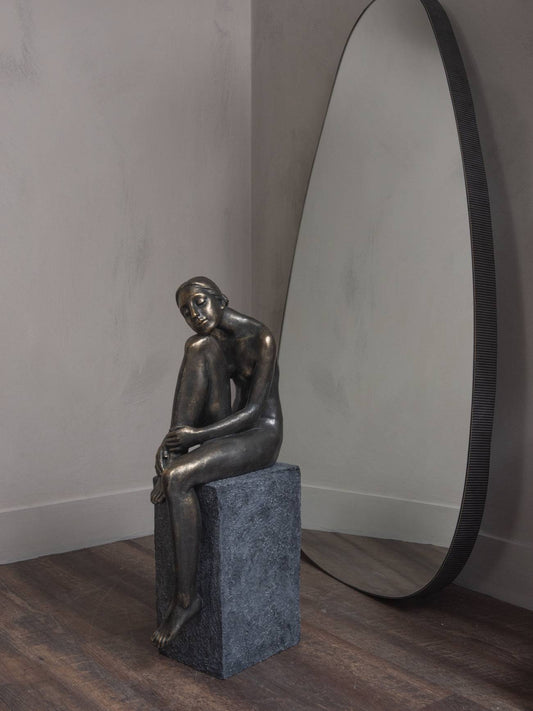 Thinking Lady Sculpture In Bronze Resin