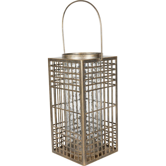 Barossa Fretwork Square Lantern in Aged Gold with Glass Flute 40.5cm