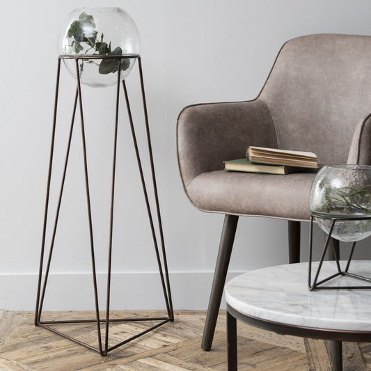 Bersa Floor Standing Fishbowl Planter with Aged Copper Base