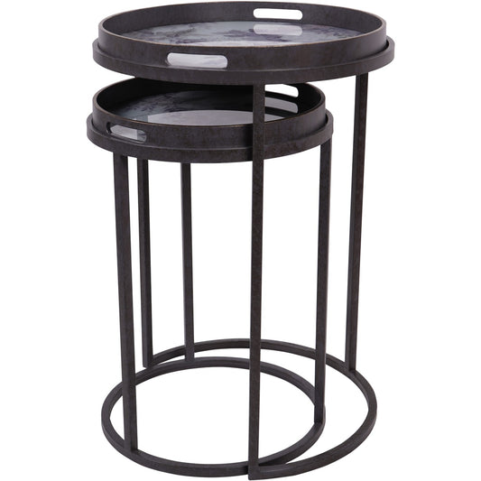 Salzburg Set of 2 Glass and Metal Side Tables Dk Bronze