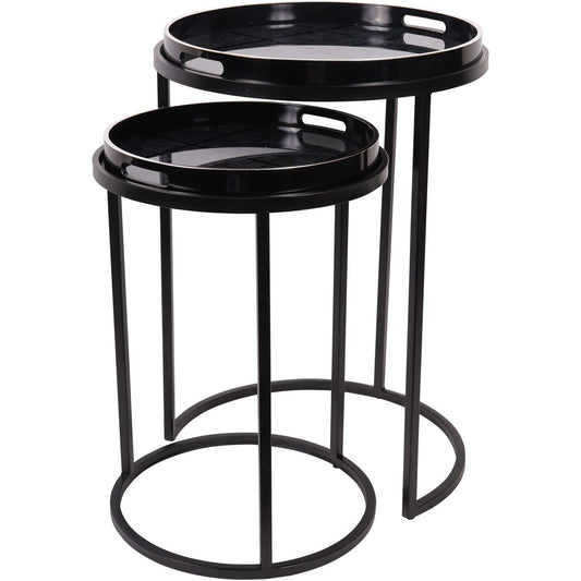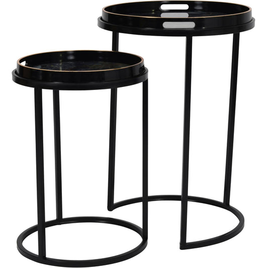 Vesuvius Black and Gold Set of 2 Side Tray Tables