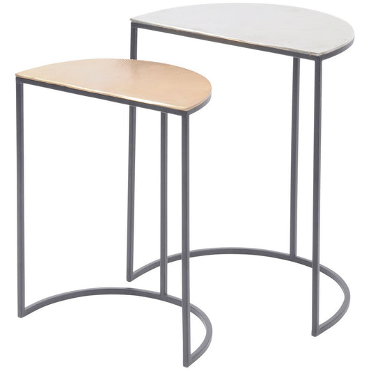 Starburst Set of Two Gold and Silver Semi Circle Starburst Side Tables