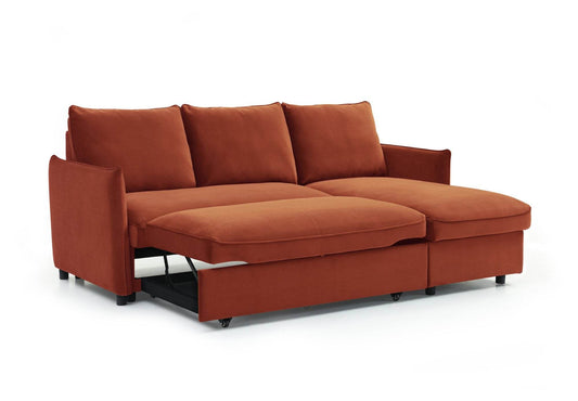Luna Athena Burnt Orange Velvet Reversible Corner Modern Sofa Bed