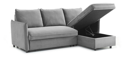 Luna Athena Grey Velvet Reversible Corner Modern Sofa Bed
