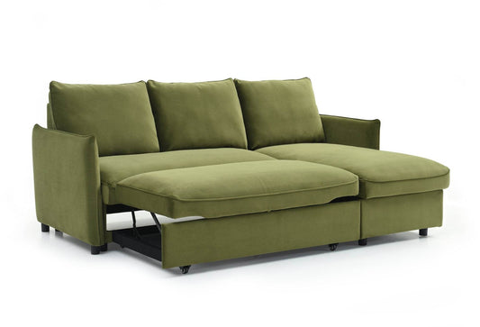 Luna Athena Olive Green Velvet Reversible Corner Modern Sofa Bed