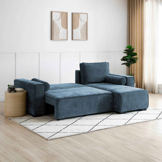 Ashton Themis Blue Soft Textured Weave Reversible Corner Modern Sofa Bed