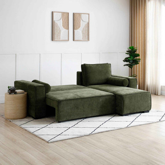 Harrison Eryx Olive Chenille Reversible Corner Modern Sofa Bed