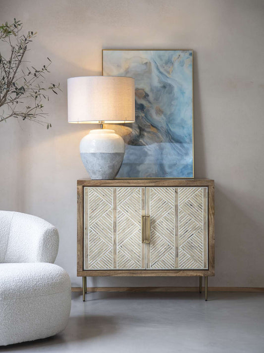 Stormy Sky Glaze Table Lamp 40cm with Cream Drum Shade
