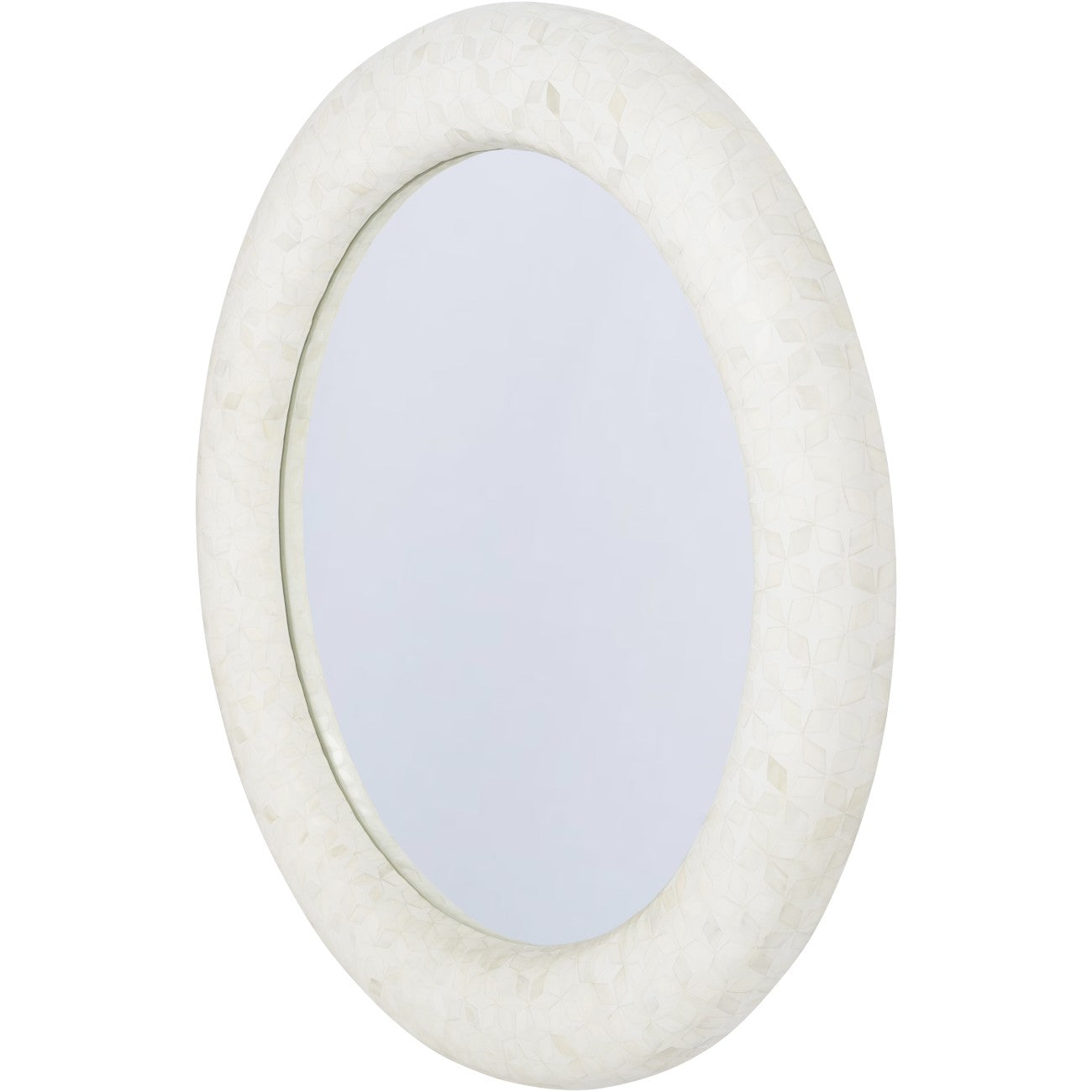 The Aspen Round Mirror is a captivating mirror made in bone to stand alone or sit proudly over our Aspen cabinet. The mirror’s sturdy rounded frame is made entirely in beautiful intricate bone inlay, which has a lustrous quality reminiscent of mother of pearl. Perfectly balanced in both form and function, the Aspen Round Mirror brings an air of refinement to any interior. Due to its weight and size, the item should be installed by a professional.