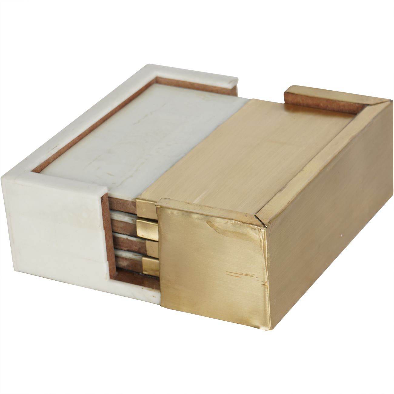 Indulge in refined elegance with our Two-Tone Coaster Set. Designed to complement our Brass and White Decor Storage Box, each coaster features a harmonious blend of luxurious antique brass and white resin inlay.