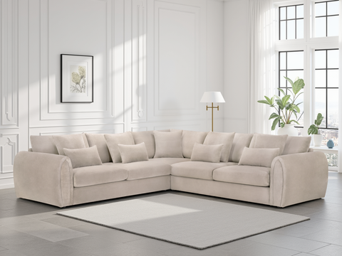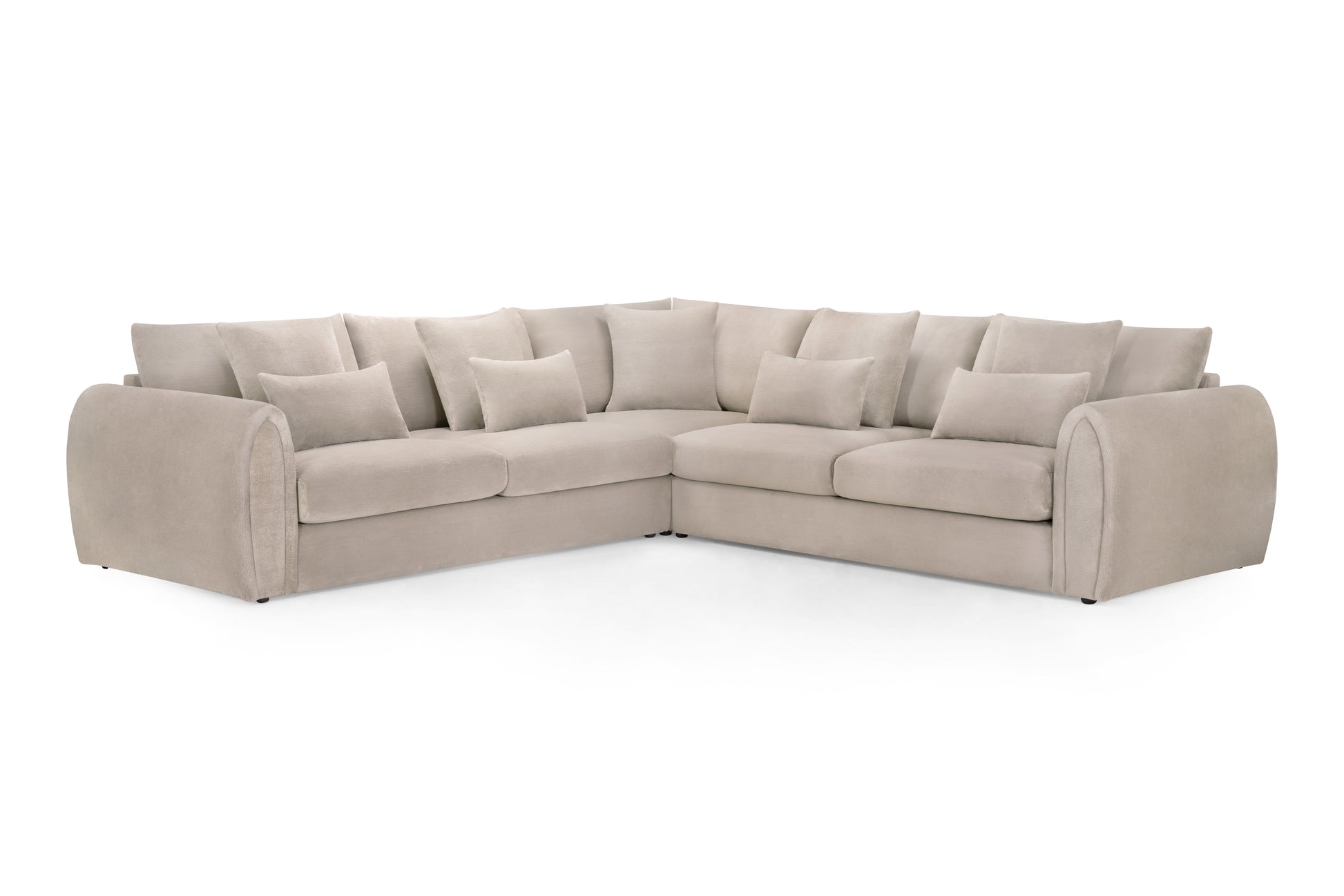 The Mirabel Sofa Mocha Large Corner offers spacious and comfortable seating, perfect for relaxing and hosting guests. The soft velvet upholstery adds a touch of luxury, while the removable seat cushions and extra comfort cushions provide ultimate comfort. Complete your living space with this stylish and functional corner sofa.