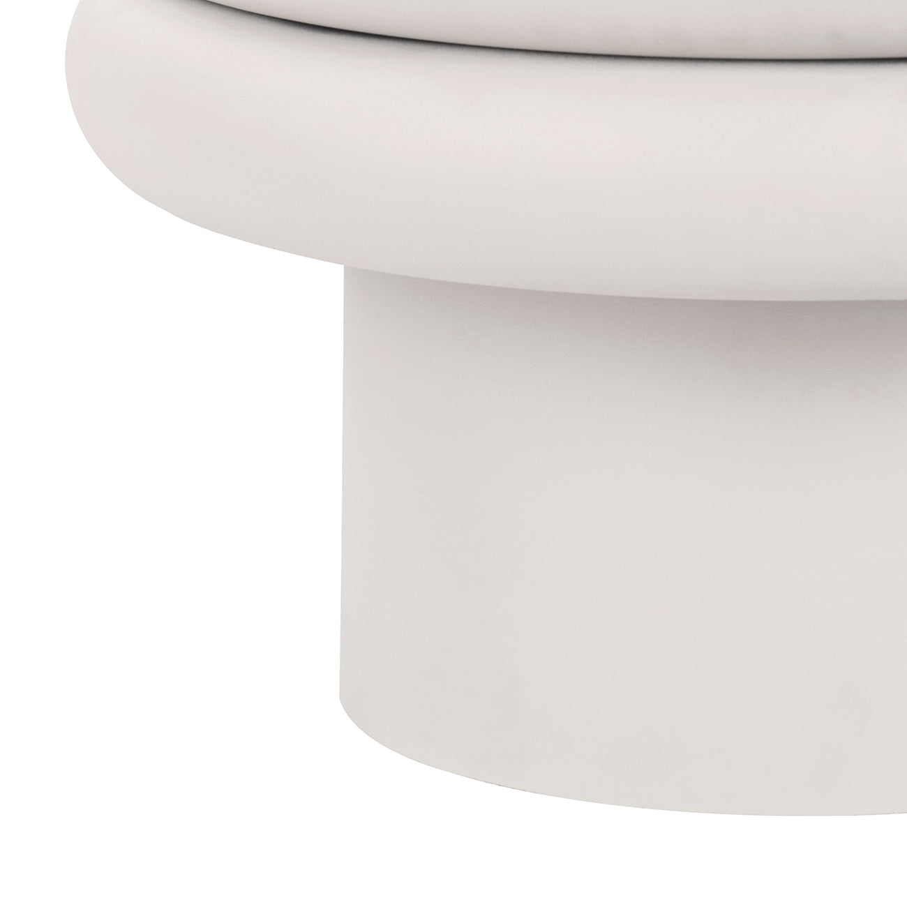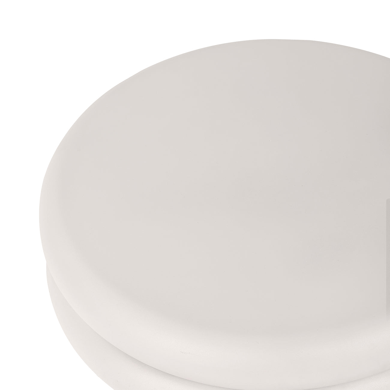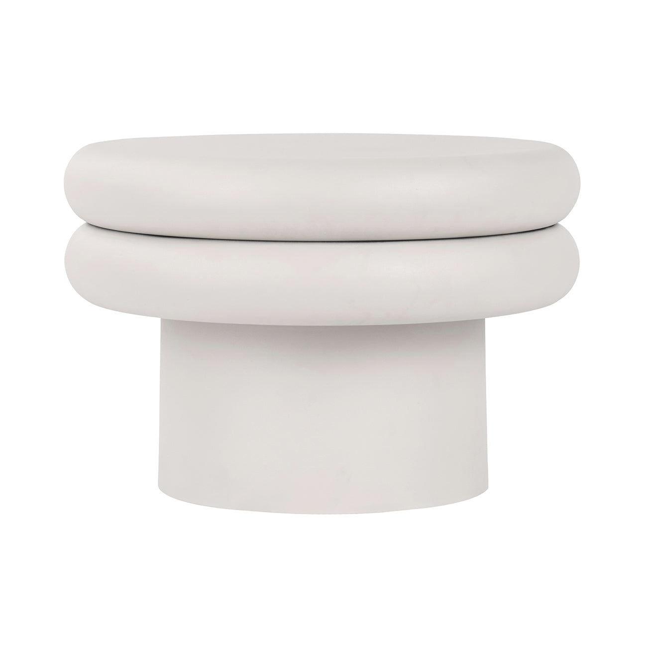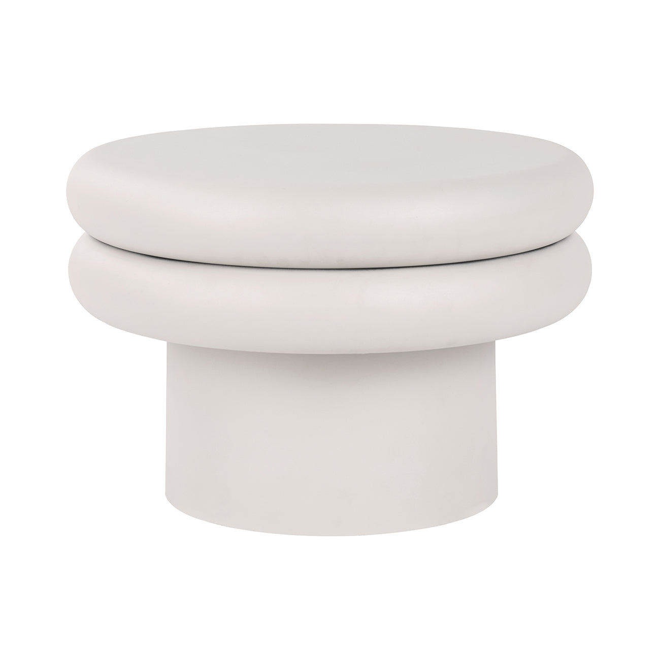 Boldly sculptural with a softened edge, the Palais Coffee Table makes a refined contemporary statement. Crafted from iron and finished in a matte beige tone, its generous circular top is balanced by a chunky base and rounded midsection that recalls modernist architectural motifs. The subtly textured surface adds visual interest and artisanal character. Pair with the matching side table to create a cohesive, design-led living space. Indoor use only.