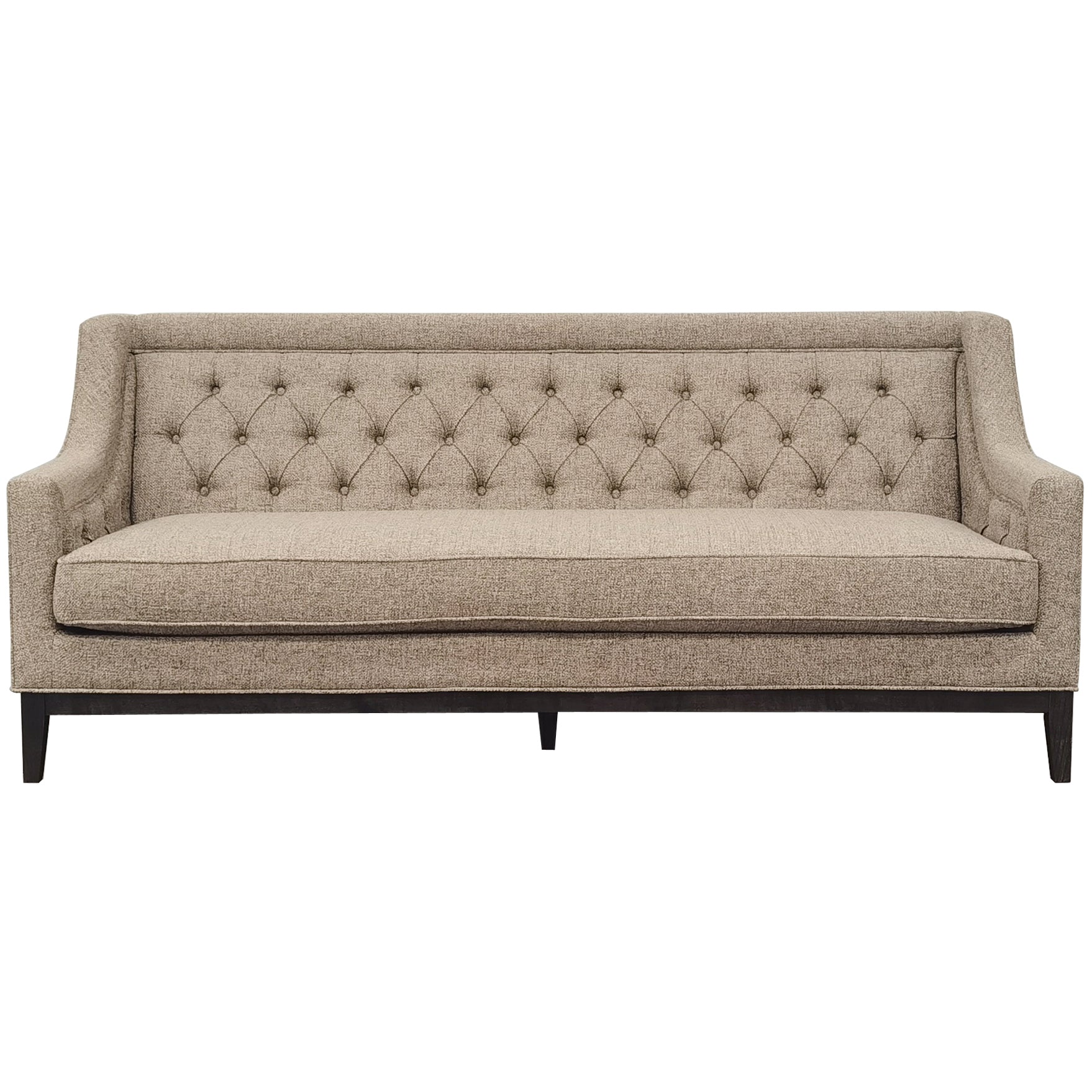 Now available in Dark Taupe, this three-seater sofa is a stylish extension of the much loved Theodore collection. Upholstered in a woven fabric that combines warm taupe and beige tones for a speckled effect, it features deep buttoning, piped edges, and a spacious deep seat cushion. Supported by a solid deep brown wooden frame, the sofa measures 200cm in length and requires simple self-assembly. Also available in Forest Green, Ivory and Warm Grey.