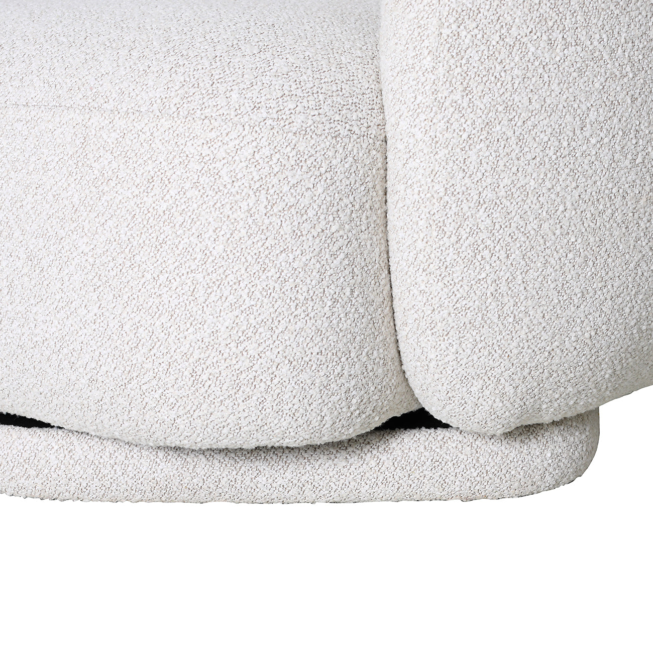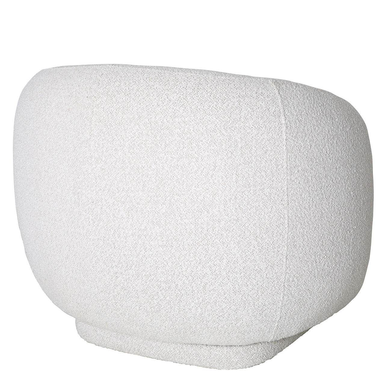 Softly rounded and deeply inviting, the Truro Occasional Swivel Chair brings a sculptural calm to modern interiors. Upholstered in a warm soft ivory textured bouclé, it captures the popular move toward tactile, cocooning materials that add warmth without weight. Its swivel base allows easy movement while maintaining a grounded, organic silhouette that works beautifully in living spaces, bedrooms or relaxed reading corners. Seat height 45cm. W93 x D87 x H73 cm.