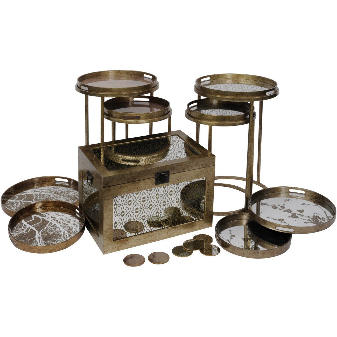 Antique Gold Diamond Patterned Set Of 2 Nested Side Tables With Removable Tray Tops. Due To The Artisan Finish There Might Be A Variance Piece To Piece. Small table dimensions 40 x 40 x 56 (WxDxHcm)